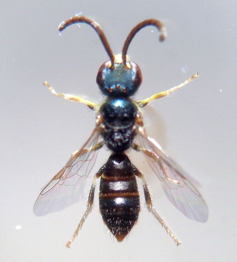 con 3,5 mm è uno dei più piccoli apoidei che vedo bottinare sulle ombrellifere di casa. Capo e torace con riflessi blù sotto lo stereo, antenne con 13 articoli. Cosa si può dire? Grazie.