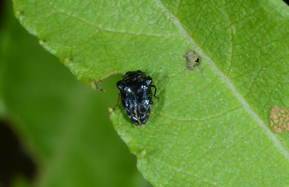 Questo micro-coleottero (2-3 mm) non riesco a inquadrarlo in nessuna famiglia, tanto che ho pensato che possa non essere un coleottero, ma magari un emittero cicadomorpha (ad esempio un Membracidae) visti gli angoli anteriori delle elitre così sviluppati da sembrare le spalline imbottite delle giacche anni 70. Ma sembra che siano appunto elitre, quindi deve essere un coleottero. Trovato su salice.