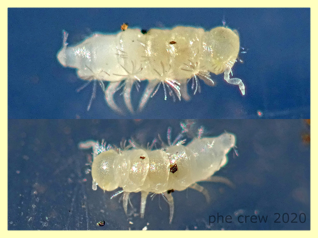 ...dopo che mi sono girato tutti i Collemboli mondiali...mi accorgo che questo individuo di soli 1,1 mm. ha 5 paia di zampe e lì...mi sono perso. Ho pensato addirittura fosse un giovane Paradoxosomatidae troncato a metà !! :lol1: :lol1: ...secondo voi cosa può essere ?...trovato sotto foglie marcescenti nel terreno insieme a degli Stafilini che probabilmente nella scatolina gli hanno staccato un antenna.