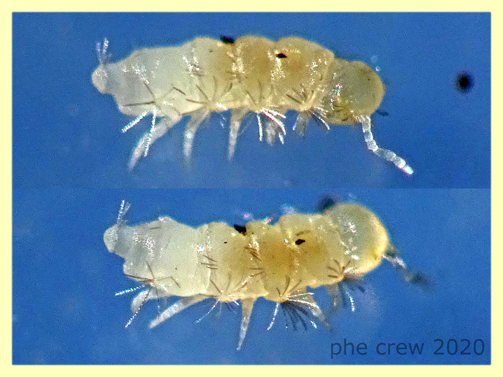 ...dopo che mi sono girato tutti i Collemboli mondiali...mi accorgo che questo individuo di soli 1,1 mm. ha 5 paia di zampe e lì...mi sono perso. Ho pensato addirittura fosse un giovane Paradoxosomatidae troncato a metà !! :lol1: :lol1: ...secondo voi cosa può essere ?...trovato sotto foglie marcescenti nel terreno insieme a degli Stafilini che probabilmente nella scatolina gli hanno staccato un antenna.