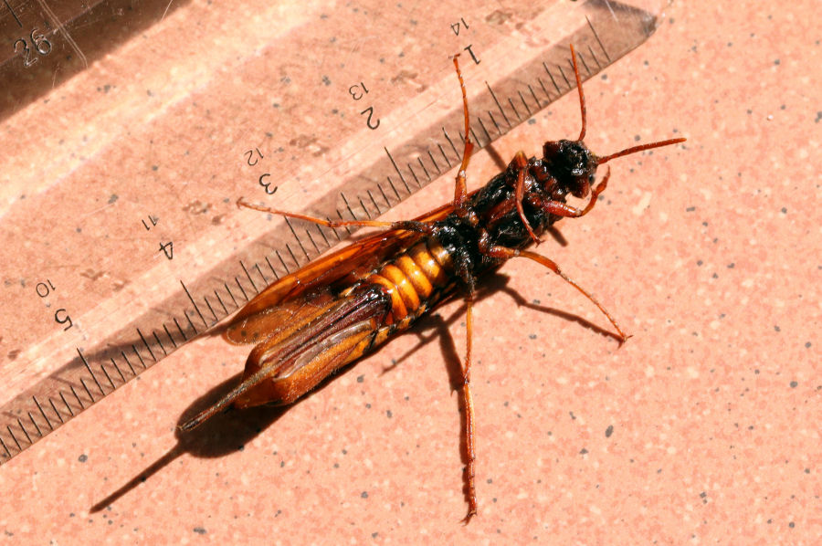 Ho trovato questo bel Siricide rovesciato sulla schiena in mezzo a una piccola pozzangera sul terrazzo. Le ali bagnate si erano incollate alle piastrelle e si dibatteva nel tentativo di girarsi. Gli ho dato una mano ;) e l'ho messo al sole ad asciugarsi.