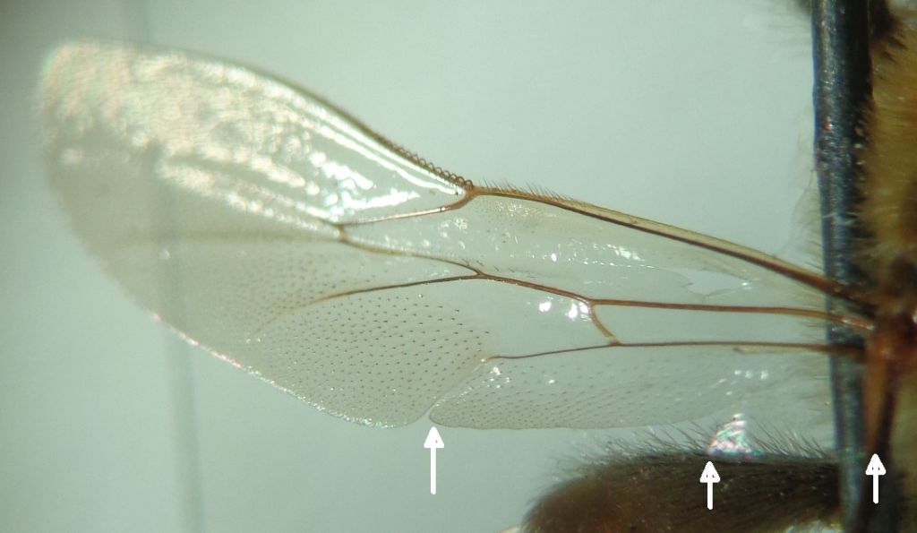 Ecco due foto esplicative: per i lobi alari ho inserito uno spillo per stendere il lobo anale (tra le due frecce a dx).