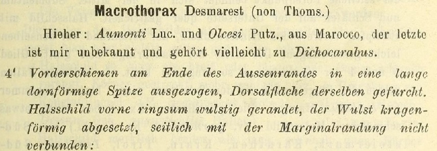 subgenus: Macrothorax Desmarest, 1851: type species Carabus aumontii Lucas, 1850