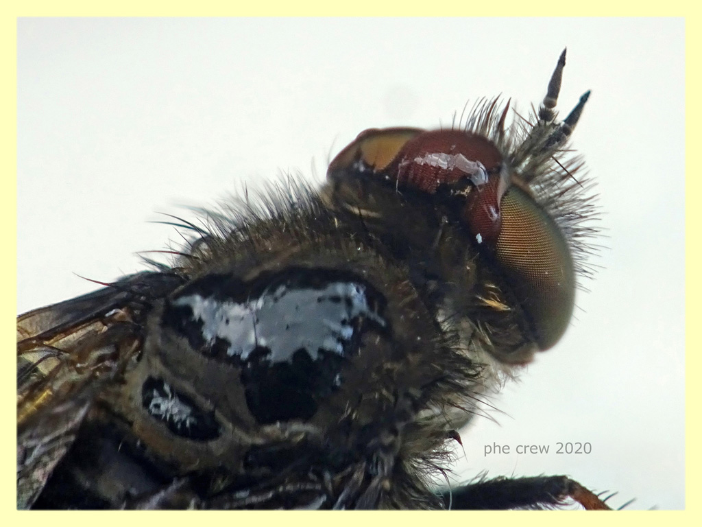 ...ciao a tutti ! ...il mese scorso mi sfarfallo' questo Therevidae tutto nero. La larva la trovai interrata ad una decina di cm. sotto ad un albero in un terreno abbastanza duro e secco. L'ho alimentata con mosche morte ben interrate e pressate nel terreno. Ho notato che non si alimentava nel terreno morbido ma solo ben pressato e secco, come se gli servisse attrito o formare delle gallerie per poi bucare la preda. Penso che in natura mangi prevalentemente pupe o larve immobili nel terreno, anche se mi si è presentato un atto di cannibalismo per una stessa larva....ne avevo trovate due e una dopo un giorno era tutta risucchiata e svuotata. Anche se si dimentica di inumidire il terreno e diventa estremamente secco riescono a vivere e muoversi benissimo. Dalle foto viste in rete mi avvicino a Thereva inornata o Thereva unica. Secondo voi ? Ho messo la data dello sfarfallamento. :hi: