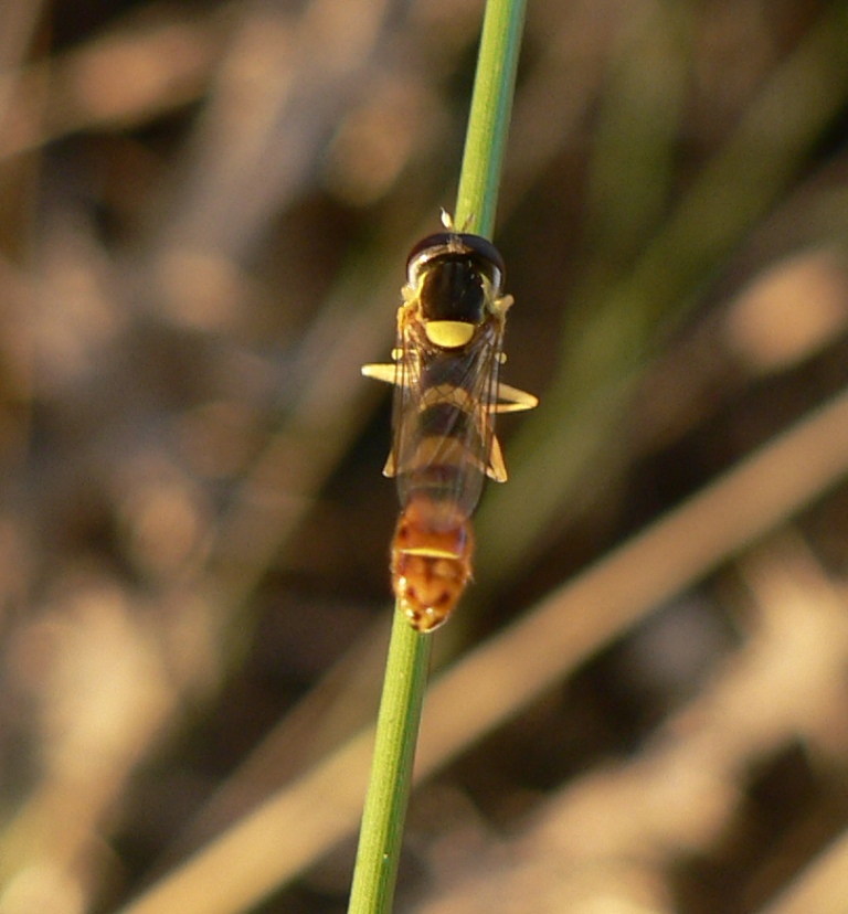Sphaerophoria scripta, é un maschio e l'addome é decisamente più lungo delle ali.