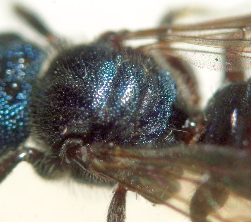 Altro esemplare maschio di mm 6 ca, a netta colorazione blù. 7° tergite piccolo, sottostante il precedente che è carenato al centro.