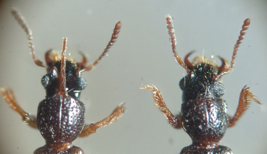 femmina mm 4,3. Ritengo sia una coppia. Alla luce UV. Non ci ho capito molto anche questa volta! Spero siano riconoscibili a vista. capo microsculturato ma il maschio ha la parte posteriore del vertice lucidissima e impunctata. Elitre con radi corti peli eretti. Grazie.