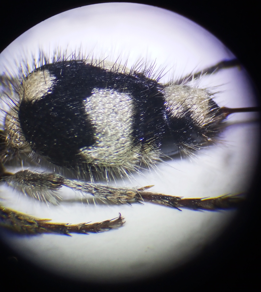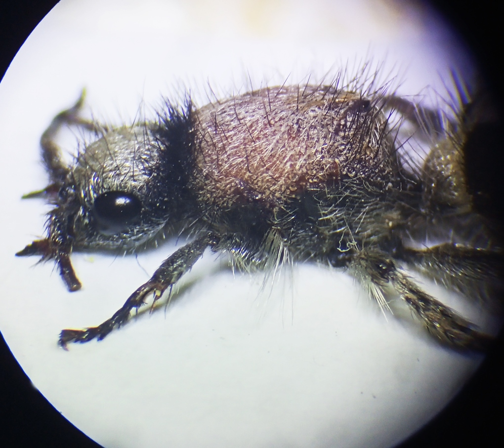 Qui un esempio di esemplare spagnolo a torace nero, ricoperto da una fitta pubescenza bianca coricata e qui, invece, un esemplare a torace rosso ricoperto da pubescenza bianca meno densa e peluria nera sul pronoto, come quello che hai raccolto.