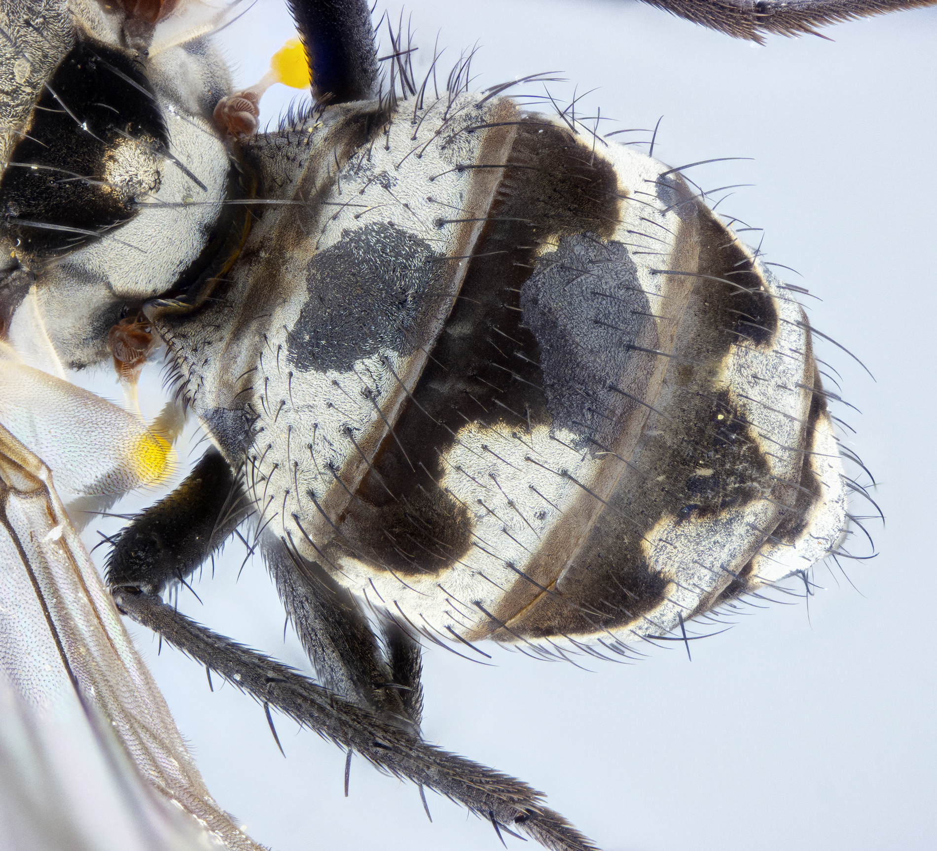 Già che ci siamo, uno dei caratteri che consentono di separare gli Anthomyiidae dai Muscidae è la presenza o meno di peluria sotto lo scutello. Inutile dire che nelle foto di insetti vivi non sono mai riuscito a cogliere iil carattere. Qui si vede?