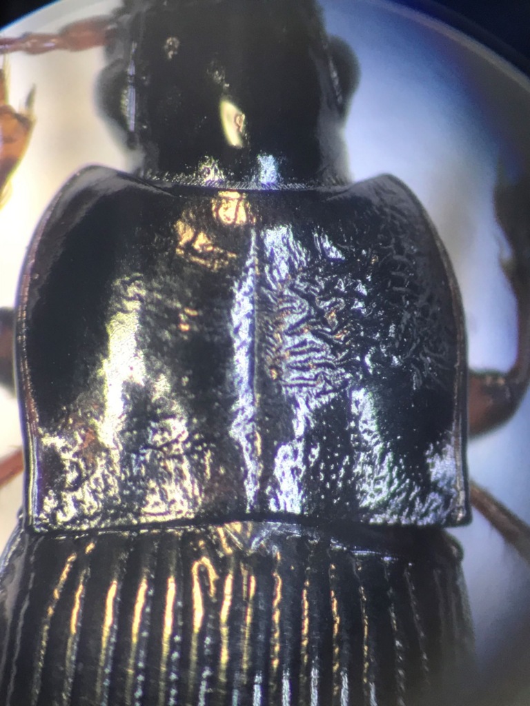 Buongiorno, chiedo di nuovo aiuto a chi è disponibile. Con le chiavi di Pesarini sono arrivata fino Pterostichinae (due pori sopraorbitali, elitre glabre, antenne pubescenti al più dalla metà apicale del terzo, articolo dei palpi con due setole) Ha le unghie lisce, elitre con almeno un poro setigero nella 3° interstria....fin qui è giusto? mi sono arenata sul concetto di tibie nettamente o mediocramente allargate. io direi nettamente e poi comunque non mi pare abbia un poro nell'angolo posteriore del pronoto, ma non mi sembra un Tapinopterus qualcuno ha voglia di spiegarmi? dimensioni 0,7 luogo di ritrovamento Dolomiti Bellunesi, Vette Feltrine 2000m Grazie mille