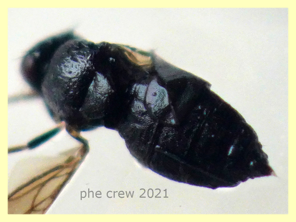 ...Dittero dalla coriaceita' dei Crisidi con riflessi blu violacei. Lunghezza di 2,1 mm. Con quell' arista così lunga e la venulazione su DrawWing arrivo a Sphaeroceridae. Si può andare oltre da queste brutte foto ?...in trappola ad aceto.