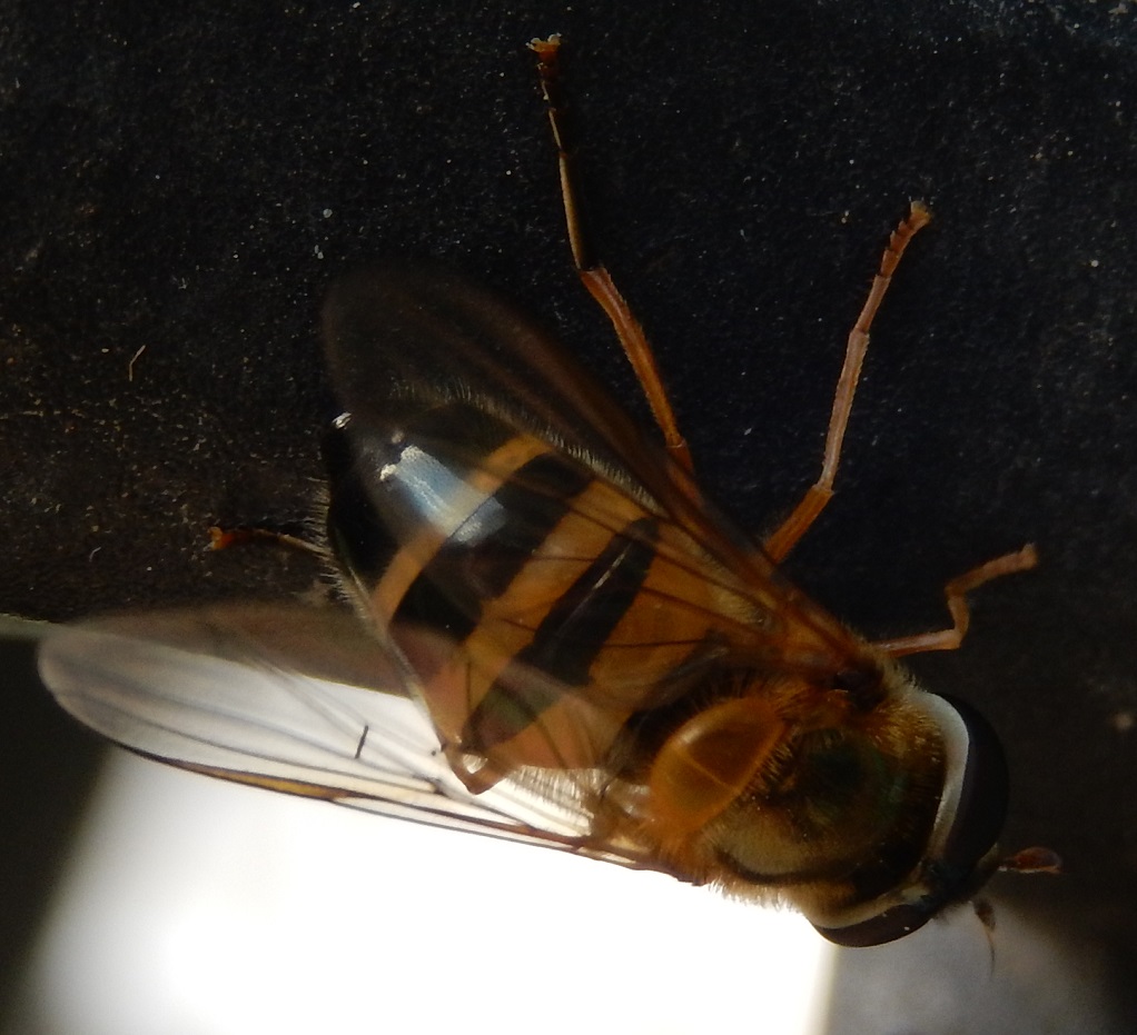 suppongo sia un sirfide, ma non saprei dire di più, non assomiglia a quelli che ho già visto. Non sono sicuro della lunghezza, circa 1,5cm. Grazie per ogni aiuto!