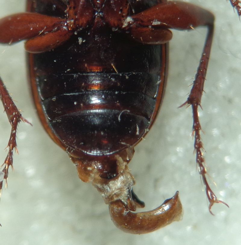 maschio di mm 9, femmina 10; tarsi glabri, non solcati, articolo ungueale senza setole. Terza interstria con 1/2 pori setigeri. Setola all'angolo posteriore del torace. Entrambi di questo colore, se fossero neri somiglierebbero a Pterostichus cognatus ma l'edeago ha un apice molto breve. Che è? Grazie.