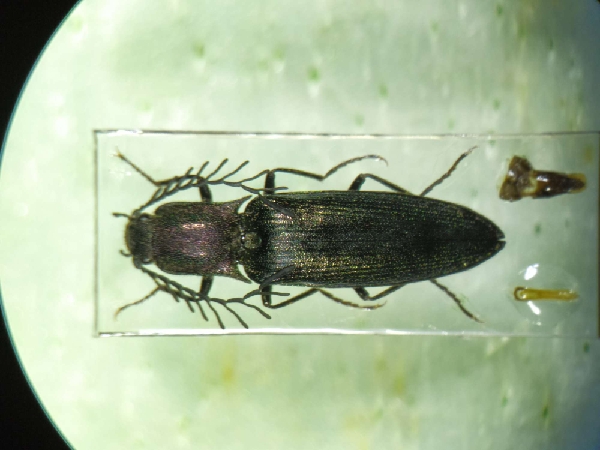 Ci riprovo, ormai sarà la terza volta credo. Però questa volta sono più convinto, dovrei essere riuscito finalmente a trovare la Ctenicera bonomii (un maschio). Mi sembra coincida tutto: zona di cattura (Monte Vigolana, quota 1800 m), colorazione verdastro-ramata, lati del pronoto paralleli, lobo mediano dell'edeago fortemente ristretto all'apice, dimensioni (13 mm). L'unica cosa eventualmente è il solco longitudinale sul pronoto che dovrebbe essere più pronunciato :? .
