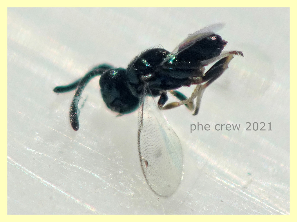 ... stavo leggendo un po' di post sui Pteromalidae qui sul forum e ho notato che anche nel mio esemplare ci sono le "palle"  come in questo post: viewtopic.php?f=553&t=34692&hilit=Pteromalidae.... dunque probabilmente è proprio un Pteromalidae....ah nella foto dell' ala ialina c'è da precisare che sotto si vede quella più piccola.