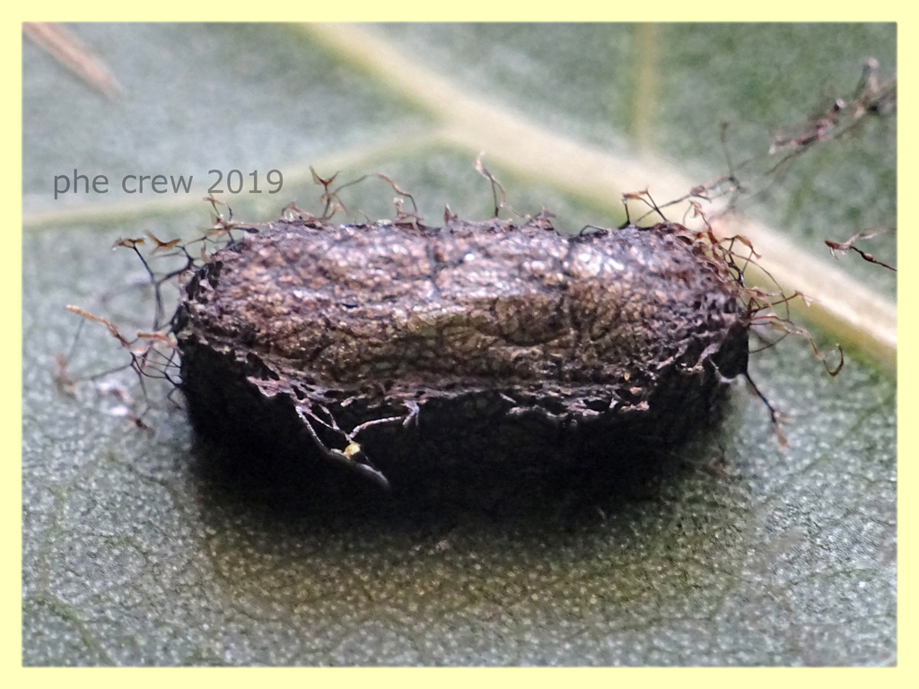 ... successivamente sono sfarfallati in due giorni diversi, la prima foto ritrae il foro d'uscita del 2.7.2019, la seconda l' 8.7.2019