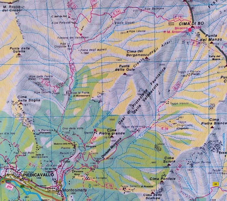Nella mappa, il sentiero che abbiamo fatto è indicato con E70 e successivamente E74: