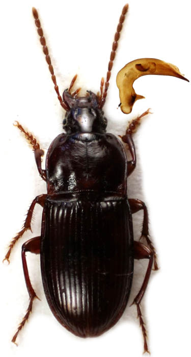 Da notare lo stranissimo edeago (anche se un po' tutte le specie di Trechus del gruppo strigipennis hanno forme strane).