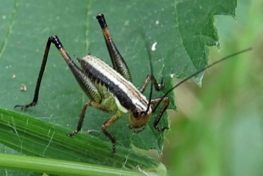 Ciao Michele, anche io ho osservato e fotografato un ortottero molto piccolo simile al tuo... tuttavia il mio era più beige, con le zampe chiare anzichè nere e senza verde sotto, ma per il resto davvero simile al tuo. Inserisco la foto qui sotto. Con altri siamo arrivati alla conclusione che fosse una neanide di Eupholidoptera. Però io abito nelle Marche, colline vicine al mare, quindi credo che l'ambiente sia molto diverso....Boh!
