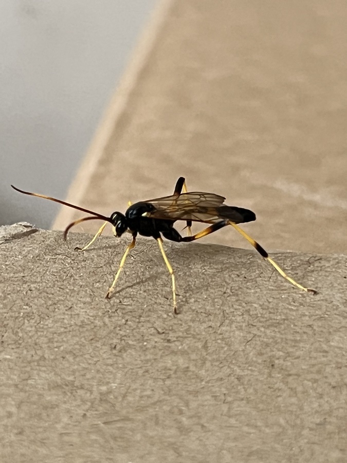 Se hai il sospetto di uno Sceliphron è segno che svolazzava attorno ai nidi ma questo pare il maschio di un suo specifico parassitoide, l'icneumonide Acroricnus seductor (Scopoli, 1786). :hi: