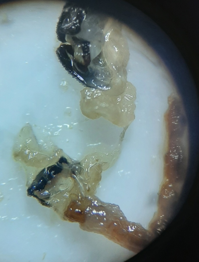 Approfondendo un po' i clytrini in questi ultimi giorni ho capito come gli organi genitali femminili (in particolar modo la spermateca) siano necessari per una determinazione sicura in certi casi, quindi preparando una femmina di Cryptocephalus (probabilmente sericeus), ho deciso di estrarla, aprendo in due l'addome con un taglio laterale e iniziando a cercare. Questi sono gli organi che ho trovato. Volevo una mano nel capire se fossero tutti e nel provare a dar loro un nome. Un'altra domanda riferita ai genitali, però maschili, di questo gruppo (Cryptocephalinae ma più in generale crisomelidi): la struttura ad Y che c'è alla base del'edeago (ora non ricordo il nome) la lasciate così com'è, attaccata, o va staccata e incollata a parte? Provando a toglierla ad un esemplare ho staccato parte dell'endofallo quindi penso vada lasciata, ma chiedo per sicurezza. Grazie per l'aiuto,