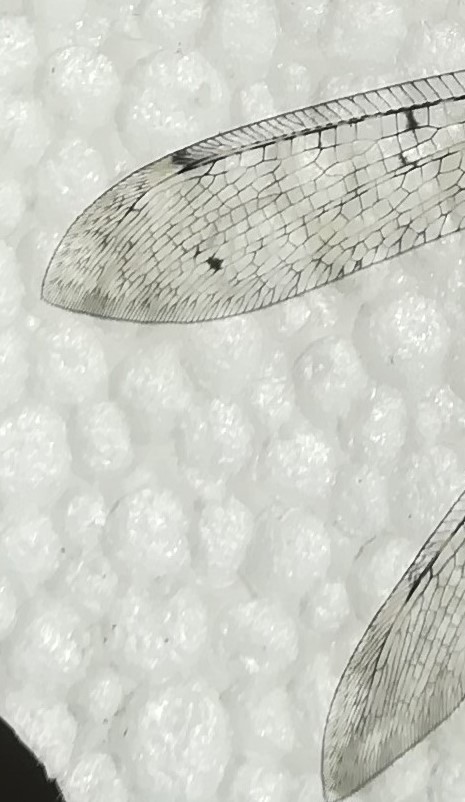 Ho diviso la seconda foto dell'esemplare in 3 foto, dove la prima rappresenta il corpo e la maggior parte delle ali, la seconda rappresenta nel dettaglio l'estremità delle ali a sinistra e la terza l'estremità delle ali a destra.