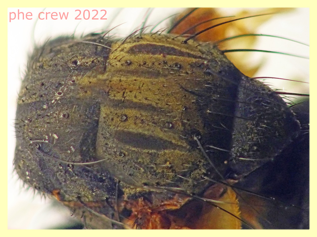 ...non saprei, sto facendo altre foto di altri dettagli che posterò.....sta di fatto che i peli orbitali sembra li abbia persi, eppure molti altri peli nel corpo ci sono......dalle ali sembrerebbe una femmina molto vecchia e sicuramente nel suggere il nettare ha perso quelli facciali..... :? ....quando l'ho tirata fuori dalla trappola era già così. :hi: