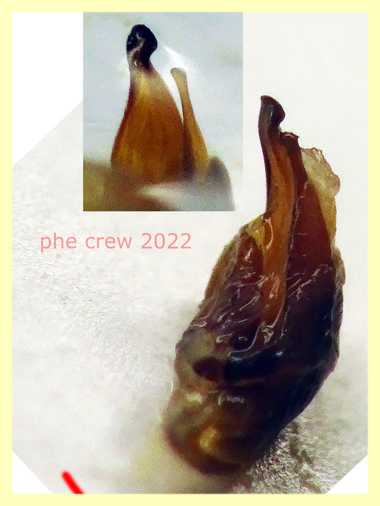 ...convintissimo fosse il micropterus, non ho fatto dettagli ulteriori ne a pronoto ne elitre, ho fatto giusto una foto veloce per far si che non mi confodessi tra i vari edeago nella scheda sd….infatti credo che non si riconoscano dettagli utili per la determinazione da questa foto, si nota solo una leggera ribordura color bruno rossastro (come le zampe) sul pronoto. Purtroppo l' esemplare e' andato distrutto e non e' piu' recuperabile :cry: . L' edeago che poi postero' e' largo alla base e si restringe lievemente verso la punta che a sua volta e' tonda, concava a mo di cucchiaio con ribordura, il paramero e' snello con punta a uncino…..proprio come melanocephalus.