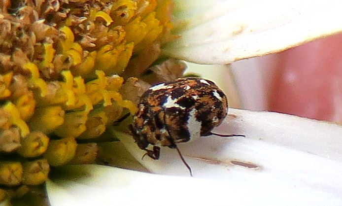 Mi spiace contraddire di Luigi, ma non penso si tratti di Anthrenus verbasci :oops: . A. verbasci presenta il tipico motivo a bande a zig-zag di due-tre colori che qui non vedo.
