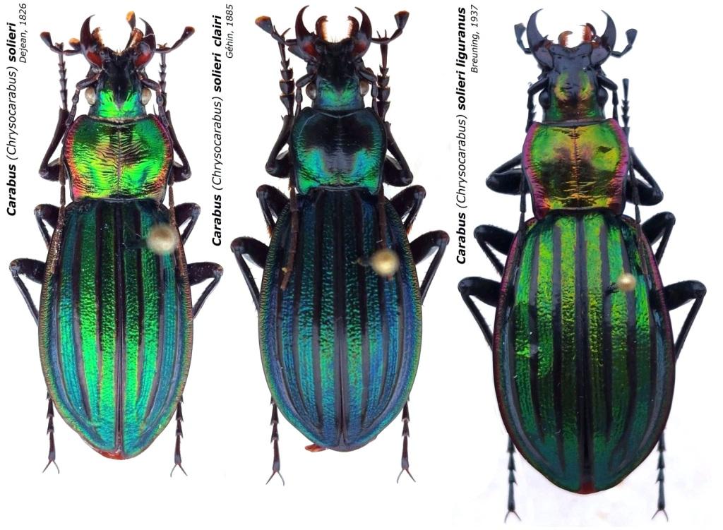 Purtroppo (o per sua fortuna) il C. solieri ha la capacità di abitare praterie alpine (anche oltre 2000 m, sotto i sassi come gli Orinocarabus, visto personalmente!) ma scende in zone boscose umide di bassa collina (sino a 600 m). Questa polivalenza comporta quindi anche diverse caratteristiche fisiche di adattamento all'ambiente (forma del corpo, scoltura elitrale, colore verde, rosso, blu etc.) tali che non ne esistono due esemplari uguali. Se poi ci si aggiunge il campanilismo entomologico (nationes geografiche :no1: , forme individuali :no1: ed altri francesismi :no1: ) esce il guazzabuglio che si capisce benissimo leggendo il disperato lavoro di tentata sintesi di Darnaud appena postato da Honza.