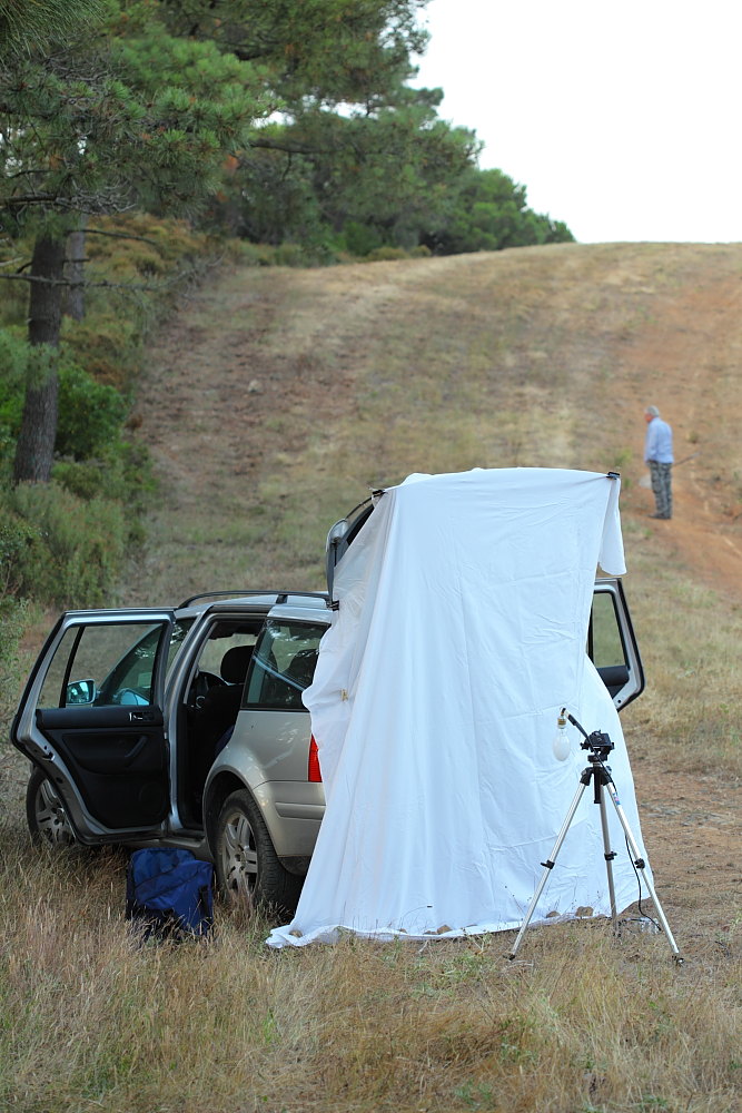 Prima vi faccio vedere la nostra (mia e del mio amico Giuliano) prima trappola luminosa!...prima che facesse buio, il mio amico Giuliano cercava qualche bestia (crepuscolare) in giro!!