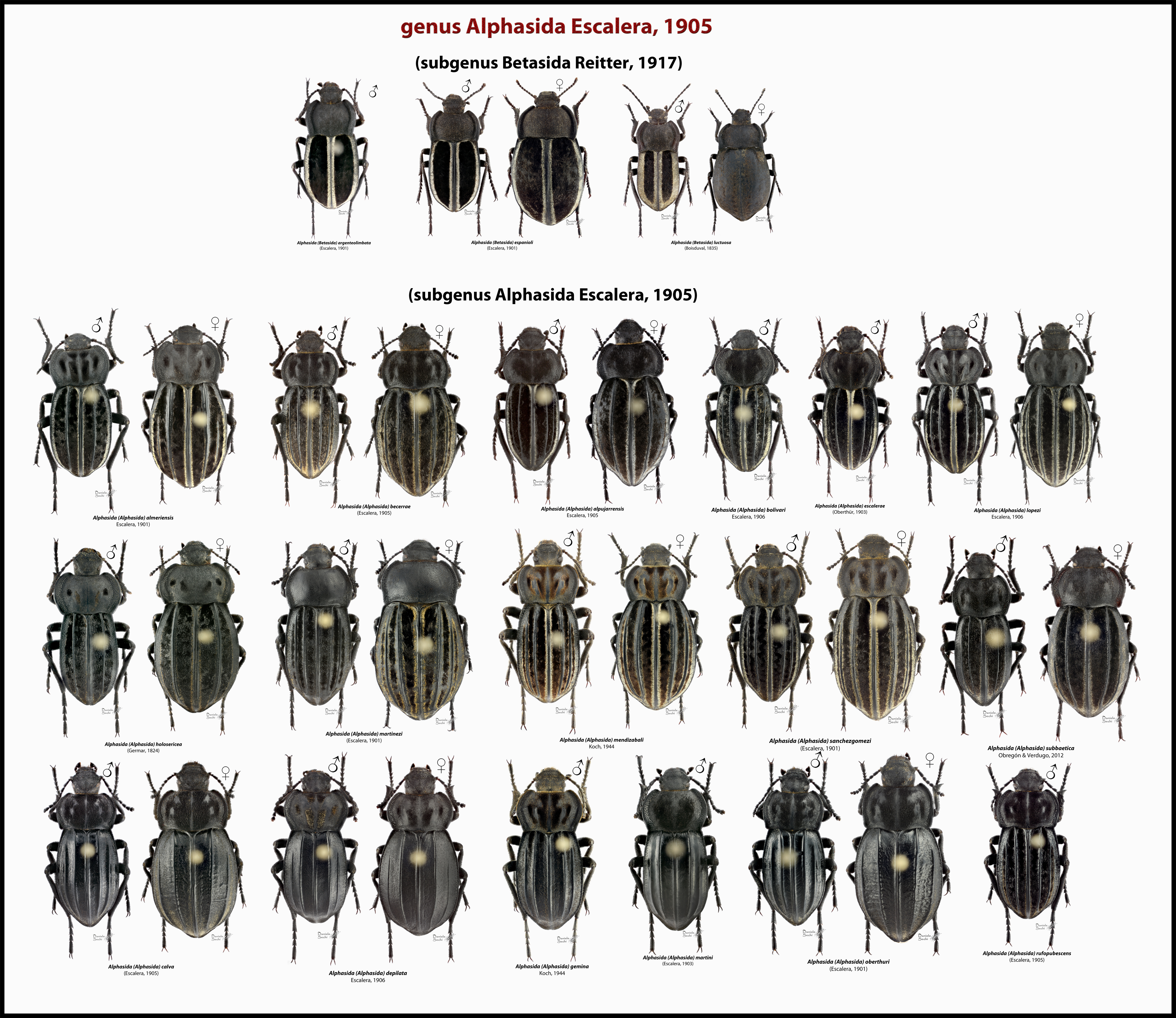 Recentemente ho fotografato una parte delle Alphasida di Piero Leo, dei sottogeneri Alphasida e Betasida. Cercherò di inserirle piano piano tutte ma intanto ho realizzato una tavola con tutte le specie fotografate che allego qui in una versione molto ridotta.