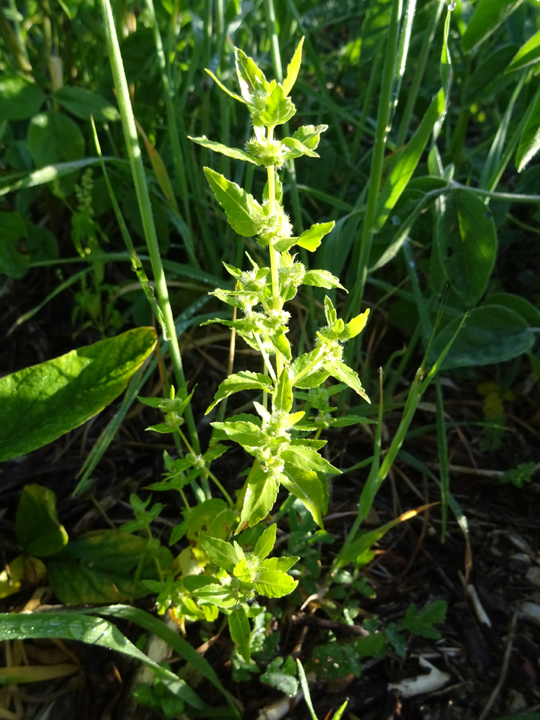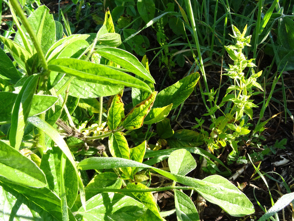 L'altra pianta è una Mercurialis sp., quasi sicuramente Mercurialis annua L. dell'anno precedente (Euphorbiaceae) e penso che i fori sulla Psoralea siano proprio "da curco", ma opinione opinabile :) .