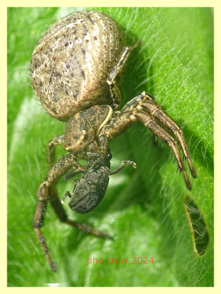 Xysticus sp. con Sitona gemellatus - Anzio 30.3.2024 - (1).JPG