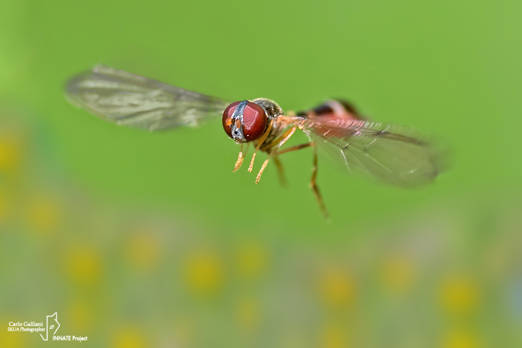 Baccha elongata (Fabricius, 1775) - Syrphidae - il volo