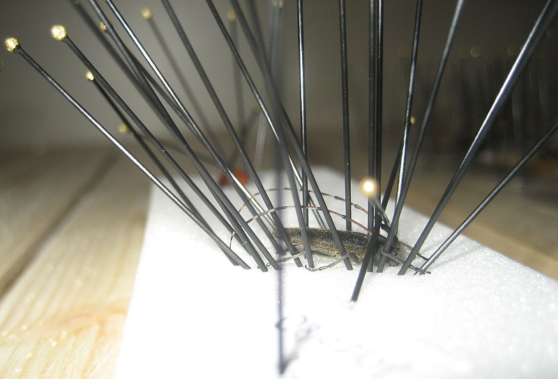 Te lo chiedo perché quella disposizione di spilli mi ircorda quando usavo ancora l'alcool, che rendeva le bestiole estremamente rigide e poco preparabili.