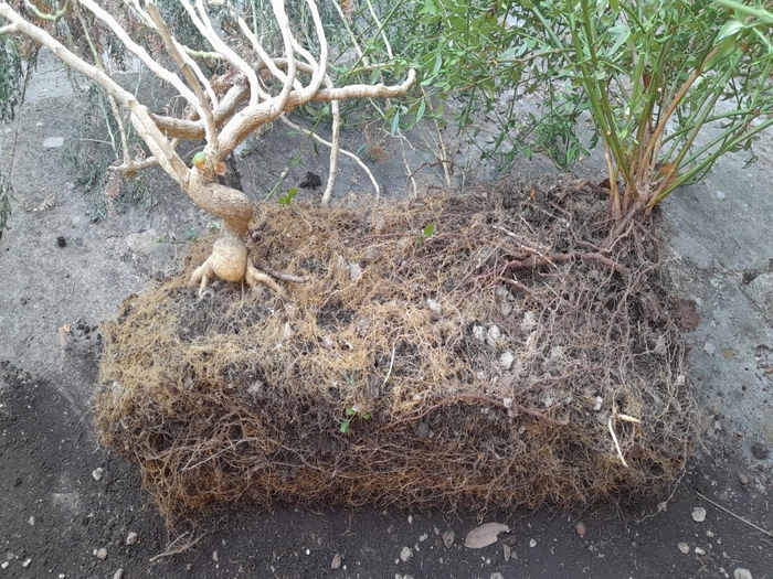 Piante fuori dal vaso (ruta e gelsomino d'inverno).
