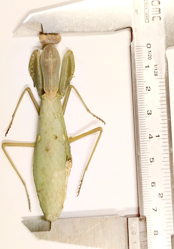 Al momento non ho fatto caso alle sue dimensioni, pensavo alla solita Mantis religiosa, anche se il periodo di ritrovamento è insolito per queste, ma poi guardandola meglio e confrontadola con altre M. religiosa ho visto che è decisamente gigante per essere una di loro.