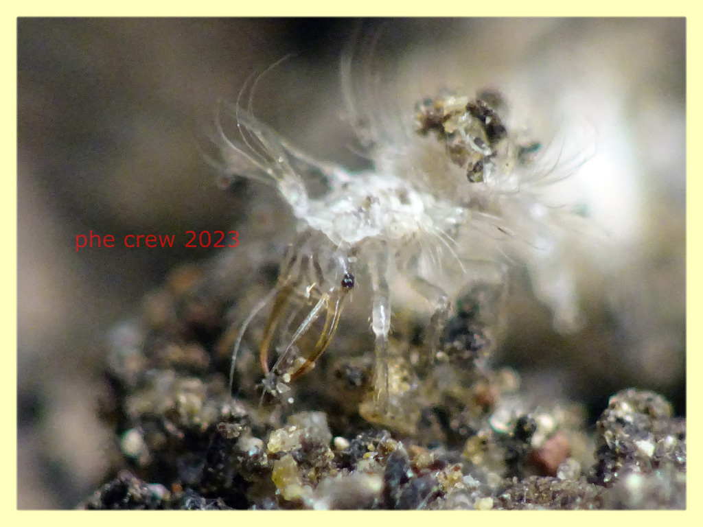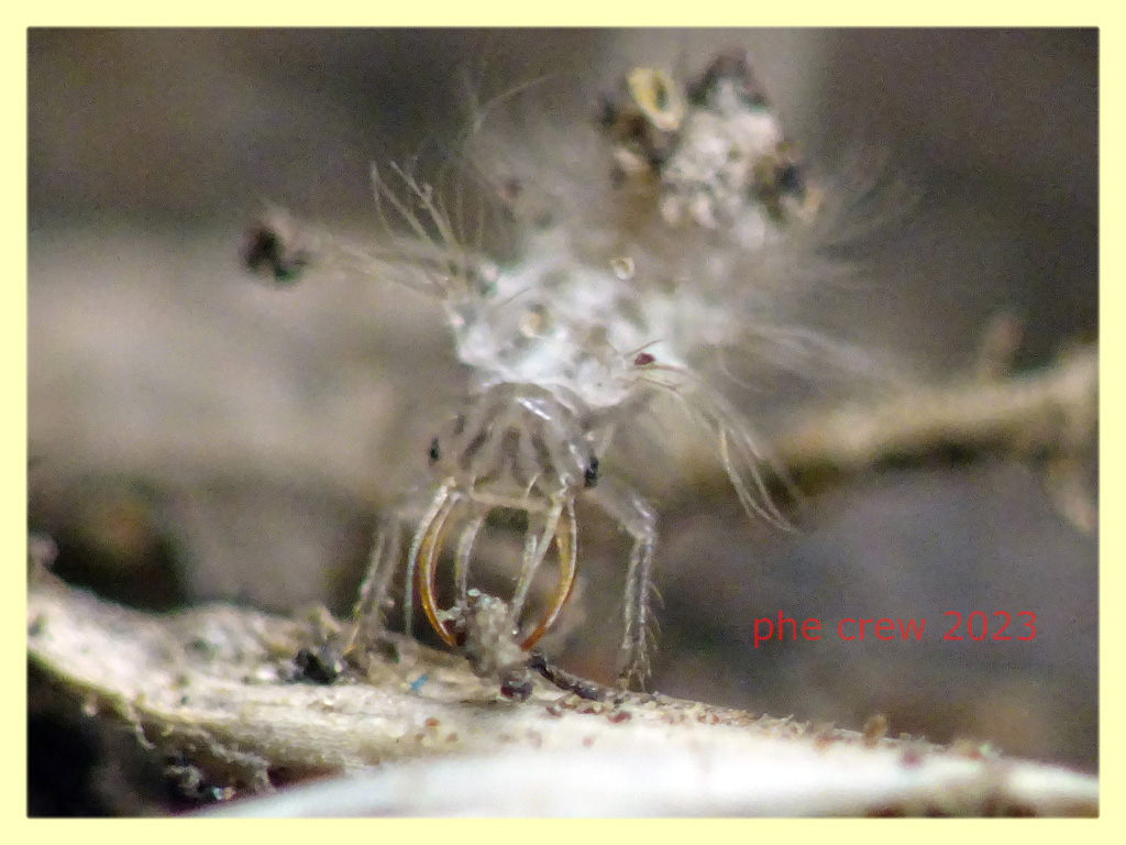 ...approfitto di questo post per inserire una sequenza di foto di una larva di Chrysopidae...precisamente una larva di Pseudomallada prasinus (gia' allevata in passato). In effetti sul groppone si mettono di tutto anche piccoli detriti come in questo caso. E' una larva di 1,5 mm. del 11.IX.2023 fotografata ad Anzio (RM). La posto soprattutto perche' mi ha incuriosito come si sceglieva accuratamente i detriti che poi si incastonava sulla schiena. Con le antenne (quelle piu' lunghe e fini) tasta il terreno...