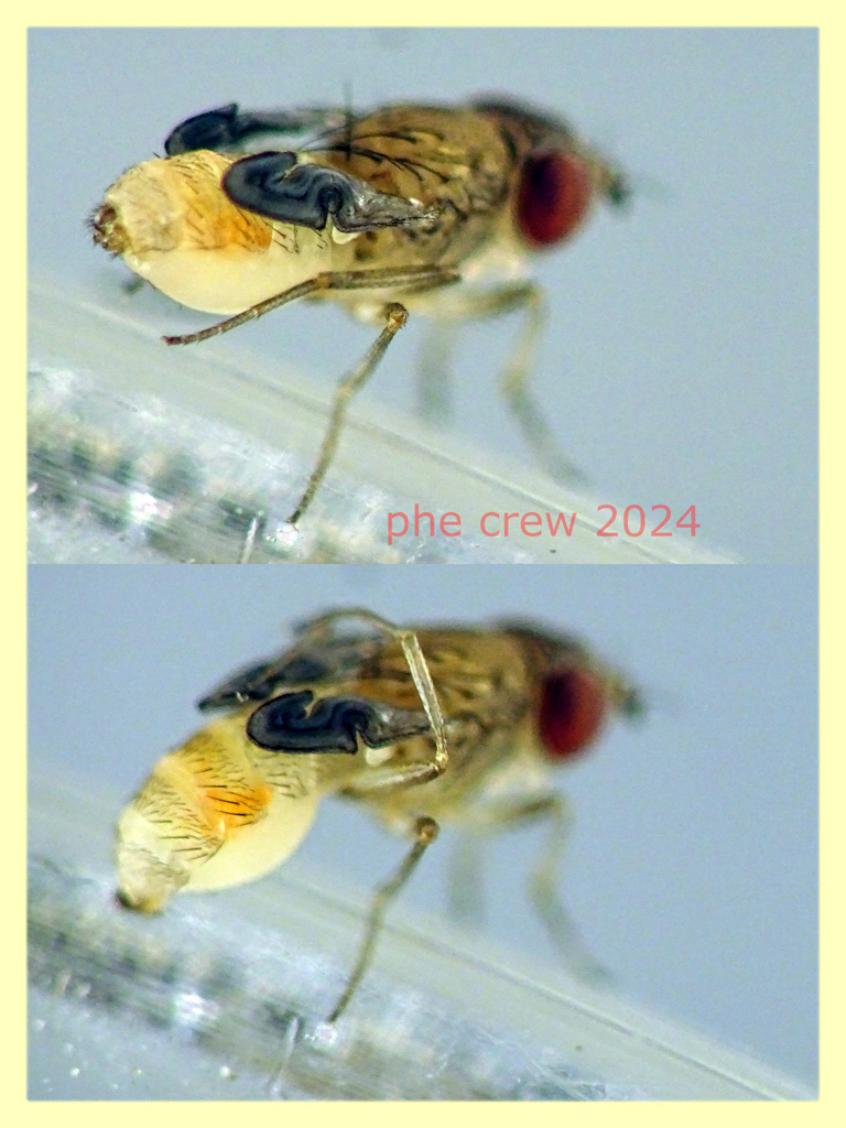 ...sono incappato in una foto di Martin Cooper su Flickr con conferma dell' identita' da Paul Beuk dove dice che la D. subobscura e' l' unica in Europa dell' obscura group ad avere una setola forte per ogni palpo (ben visibile nelle mie foto 7 e 8 del soggetto neosfarfallato). Comunque il secondo soggetto che mi e' uscito e' una femmina....postero' altre foto. :hi: