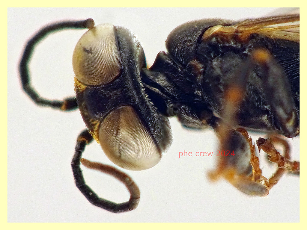 In foto quelli a gastro nero sono un dilemma (ed alcuni non solo in foto); vista la colorazione generale di zampe e peli della faccia, ci starebbe T. obscuripennis, ma diverse specie non le ho e non so se è il solo con peli gialli frontali (se lo sono). Quando poi sono presi nelle condizioni descritte, molti caratteri necessari sono compromessi o male interpretabili. :hi:
