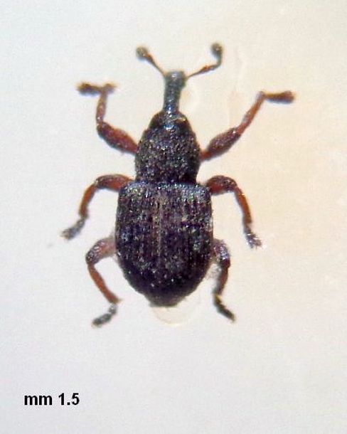 appena 1,5 mm senza rostro; tutto il corpo, rostro compreso, con peluzzi molto ricurvi; tutte le tibie con spina apicale ricurva. Scusate le foto inadeguate ma sono oltre il limite delle mie attrezzature; mi basta anche il gruppo o genere.