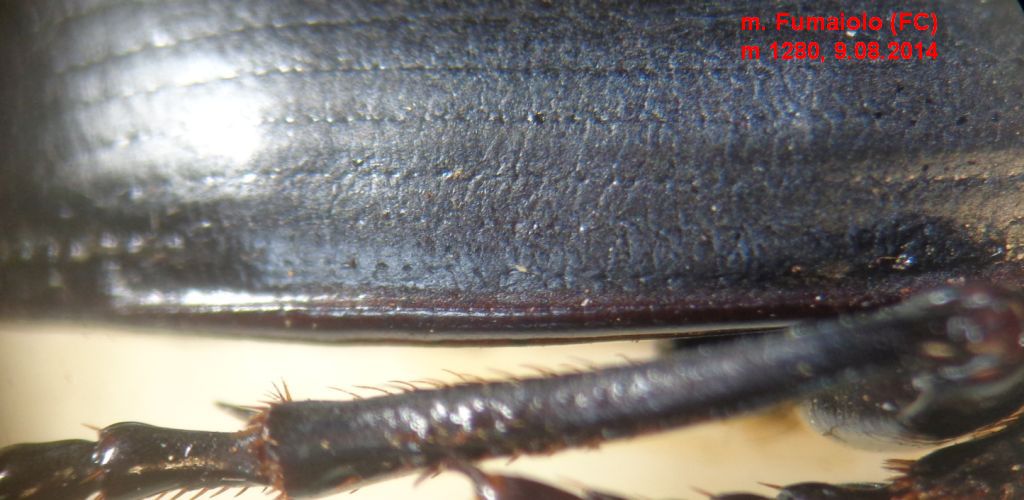 - il secondo, quello del monte Fumaiolo (FC), maschio (dissezionato solo oggi), l'avevo messo come P. dejeani Dejean, per l'8a stria non distinta dalle altre e malgrado aspetto "oblungo" e grossa taglia: di questo ho poi scoperto dal forum esistere la f.ma robustus Straneo;