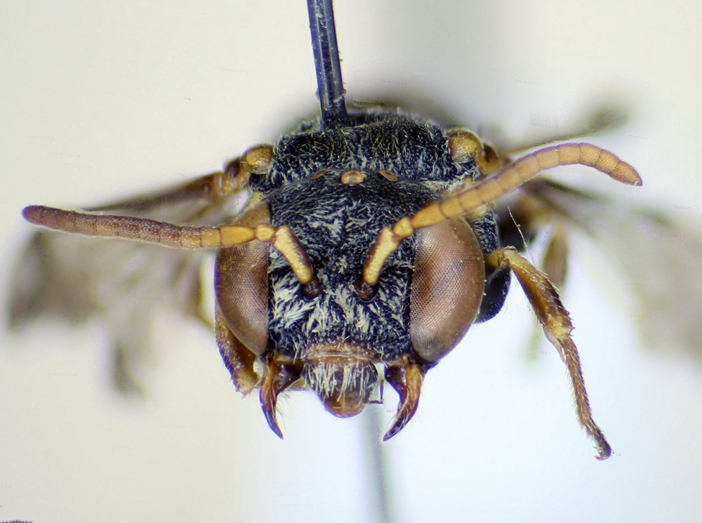Il genere Schmiedeknechtia conta appena 6 specie e comprende alcune delle api parassite più piccole del Vecchio Mondo. I suoi ospiti sono i Camptopoeum del sottogenere Epimethea, gruppo non comune e che quindi rende le Schmiedeknechtia ancora più rare e molto poco rappresentate nelle collezioni, aiutate anche dalle dimensioni microbiche che non rendono facile il loro avvistamento sul campo. Questo illustrato è un maschio di Schmiedeknechtia piliventris, specie che mi risulta nota in letteratura solo sulla serie tipica proveniente dalla Turchia, e che ha come ospite il Camptopoeum (Epimethea) variegatum.