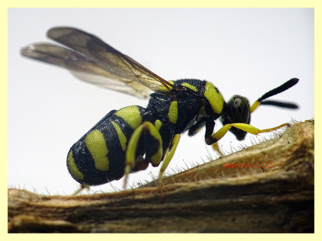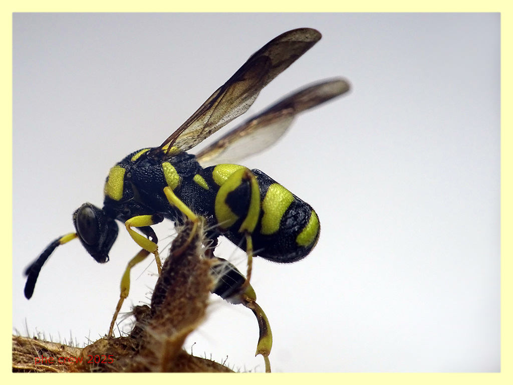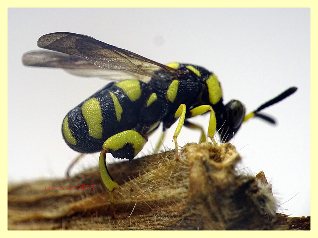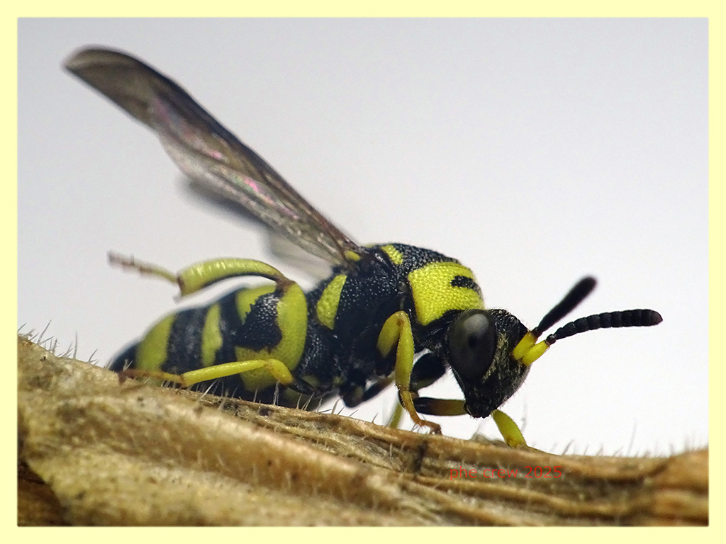 ....mi pare Leucospis dorsigera, ma in confronto a tutti gli esemplari del forum vedo la tacca nera su pronoto molto piu' corta......e' lei ?...misura tra 8 e 9 mm., se me la confermate la libero che sono 15 gg. che la mantengo con acqua e miele. :hi: