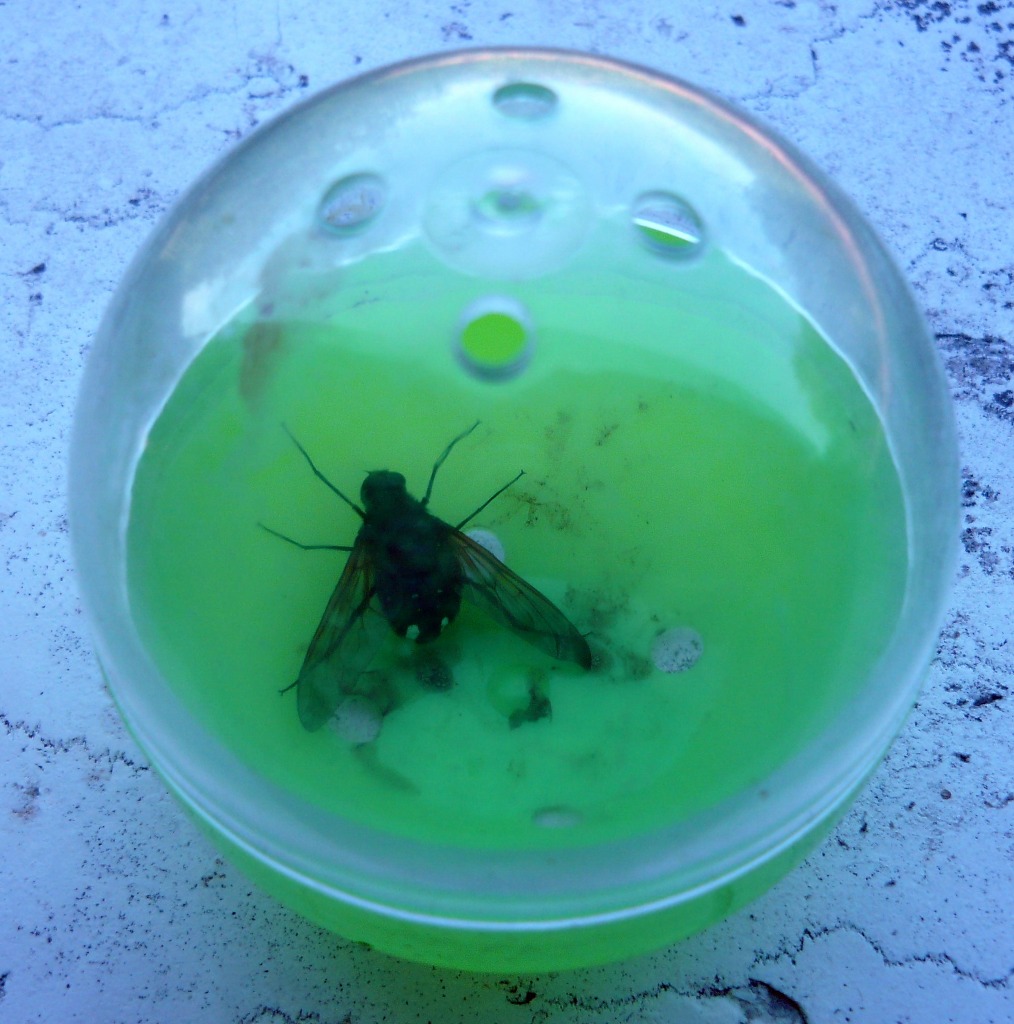 Ero a fare tutt'altro che cacce entomologiche,quindi il retino manco a parlarne,svolazzante con volo frenetico questo bel moscone era a caccia d'ombra con queste giornatine di sole a più di 30°.Io mi precipito in maccina,ma non so cosa prendere per acchiapparlo,solo una cosa trovo,una pallina di plastica (quelle delle sorpresine dei distributori) lasciata lì da mia nipote. Vabbè meglio che niente,e il pensiero và al Chryside :D