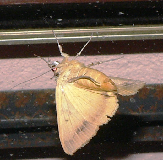 falena medio grossa colore Bianco panna con barra scurra su parte delle ali