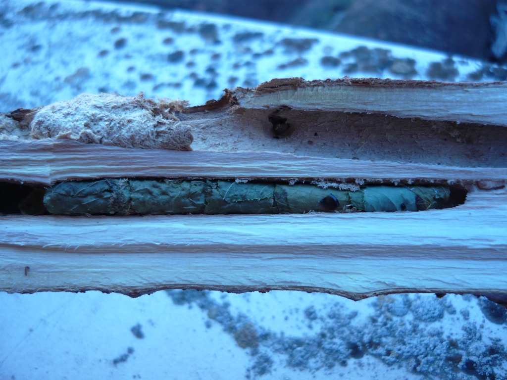Le cellette sono proprio di Megachile, fatte di ritagli di foglie. I poveri insetti che ne sono usciti, sono ditteri Sarcophagidae Miltogramminae, cleptoparassiti. Spesso le cellette di Megachile sono pesantemente parassitate, probabilmente ne usciranno altri (speriamo non facciano la stessa fine...!) così come forse uscirà anche qualche megachile (aspettiamo altre foto)...