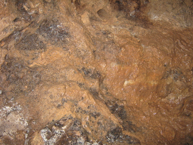 Intanto la temperatura si è molto abbassata (secondo me circa 15 gradi meno dell'esterno) e continuando alla fine del cunicolo la roccia è bagnata il terreno è fangoso per l'acqua che filtra dall'alto. Proprio dove la roccia è bagnata (e solo qui) trovo una nottua (che devo controllare se ho determinato) che è talmente a suo agio qui che ho notato diversi accoppiamenti (cosa che non ho mai visto nelle Mormo).