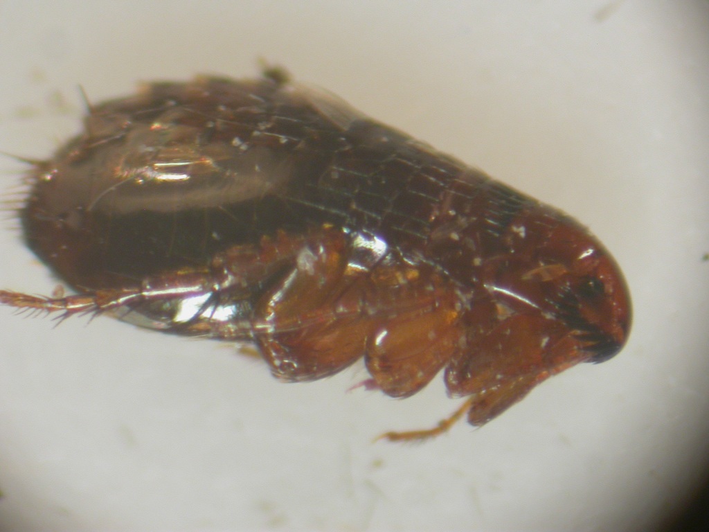 Oh che bello! Pure una pulce...! Era ora... Confermo l'identificazione di Livio, Ctenocephalides felis, la cosiddetta "pulce del gatto" che può infestare in realtà quasi qualsiasi animale, dagli uccelli ai mammiferi, uomo compreso... E' una pulce di origine africana, ma attualmente cosmopolita e legata all'uomo e ai suoi animali da compagnia o da allevamento. Si può trovare anche su animali selvatici che sono in contatto con ambienti umani. Quella fotografata è una femmina. Ciao! Maurizio